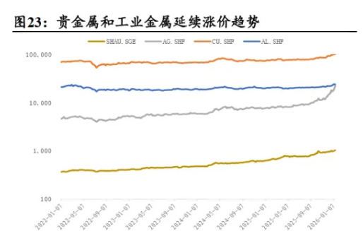 我们看好黄金、铜、铝三个有色金属里最稀缺资源的长期价值,贵金属与大宗商品上涨是对货币和信用贬值的反馈,这是大宗商品整体上涨行情的基础力量:美国财政纪律松动,赤字率在顺周期的状态中保持高位;货币纪律持续松动,未来1个月到半年,包括IEEPA司法裁决、本月末两党能否达成一致以避免政府再次关门、中期选举压力下美联储新主席推出与鲍威尔是否会顺利离任,为市场信心带来诸多考验;同时我们看多基本面向上的金属。AI带来的电力需求快速提升显著提振两类有色金属的价格,一类是作为材料载体的铜、银、钨、钽、铝等,另一类是锂、钴、镍等作为能量载体的金属。