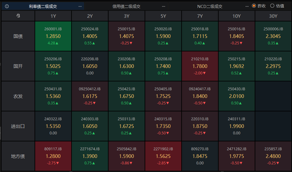截至今日17:30,利率市场收益率多数上行,10Y国债下行0.25bp至1.84%,30Y国债上行0.35bp至2.30%。信用市场收益率多数震荡,2Y期AAA信用债收益率持平至1.73%。债市早盘下跌。中国央行开展1583亿元7天期逆回购操作,净投放722亿元。资金面中性,资金情绪指数50,资金价格较昨日上涨,DR001在1.32%附近,DR007在1.48%附近。